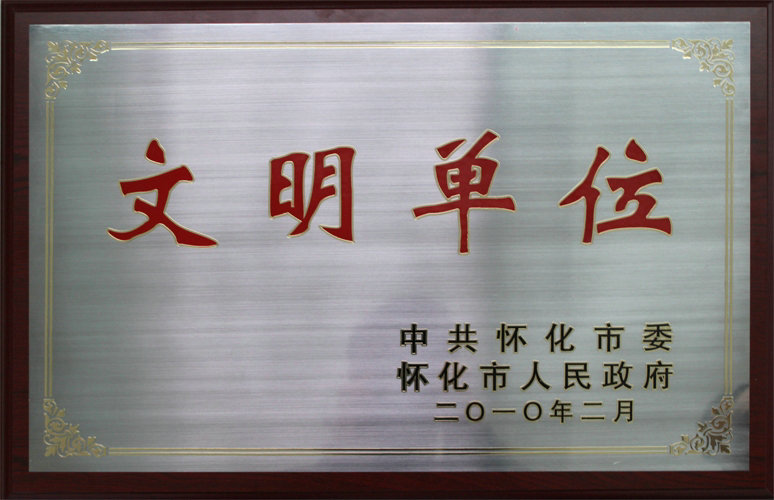- 2010年2月公司被中共懷化市委、市人民政府評為“文明單位”