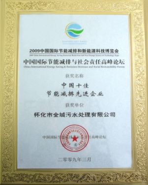 - 2009年3月在胡錦濤、溫家寶等中央領(lǐng)導(dǎo)出席的中國國際節(jié)能減排與新能源科技博覽會和高峰論壇上評為“中國十佳節(jié)能減排先進(jìn)企業(yè)”。