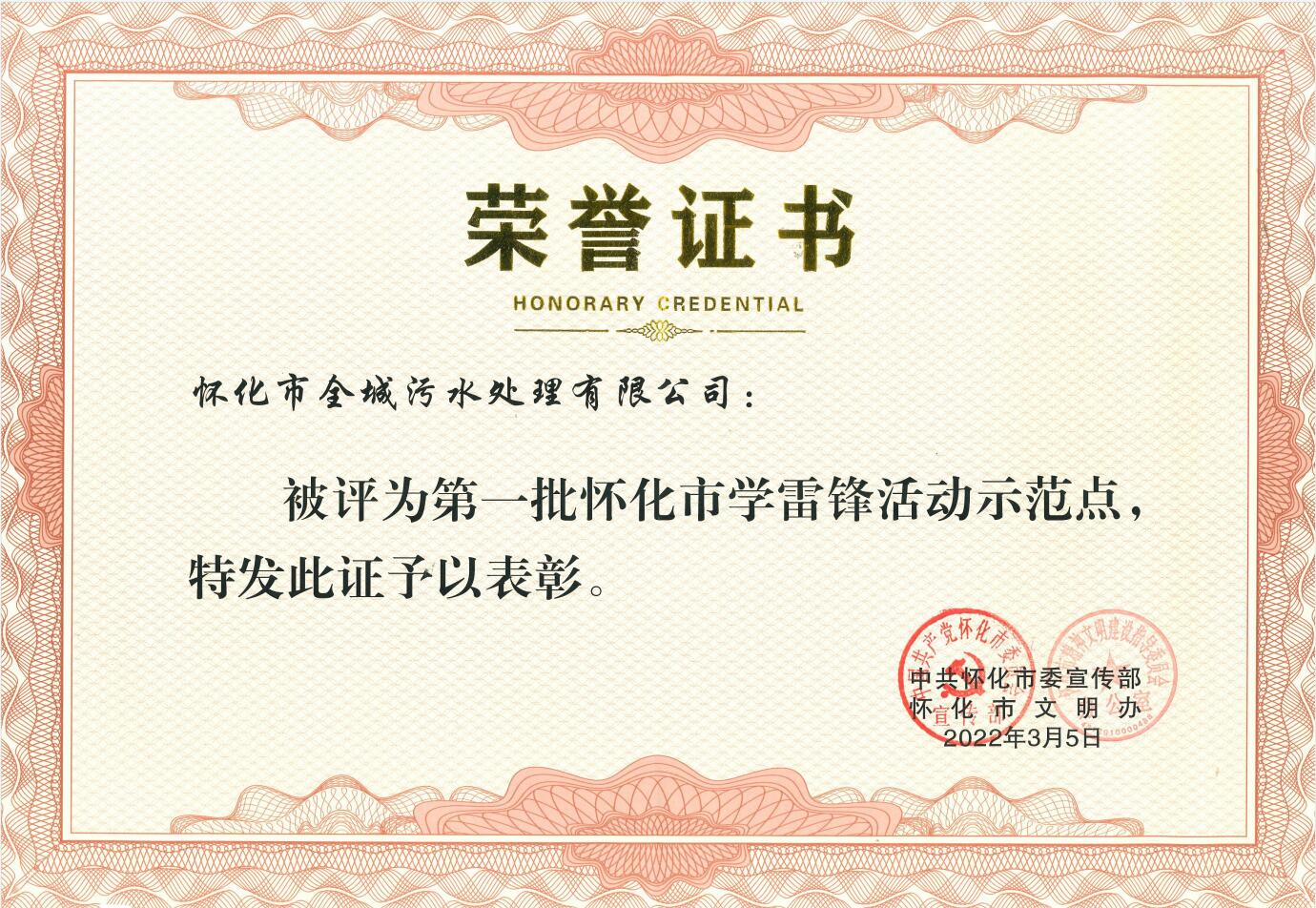 - 2022年3月被中共懷化市委宣傳部評為懷化市第一批“學(xué)雷鋒活動示范點(diǎn)”榮譽(yù)稱號