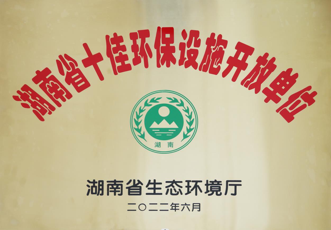 - 2022年6月被湖南省生態(tài)環(huán)境廳授予“湖南省十佳環(huán)保設(shè)施開放單位”