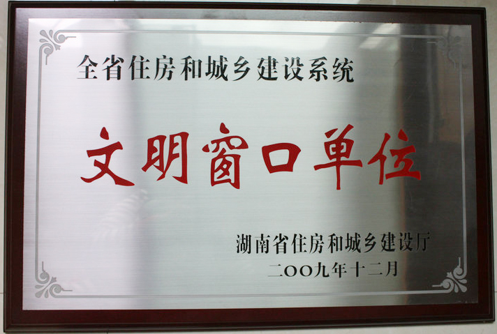 - 2009年12月被湖南省住房和城鄉(xiāng)建設(shè)廳評為“全省住房和城鄉(xiāng)建設(shè)系統(tǒng)文明窗口單位”