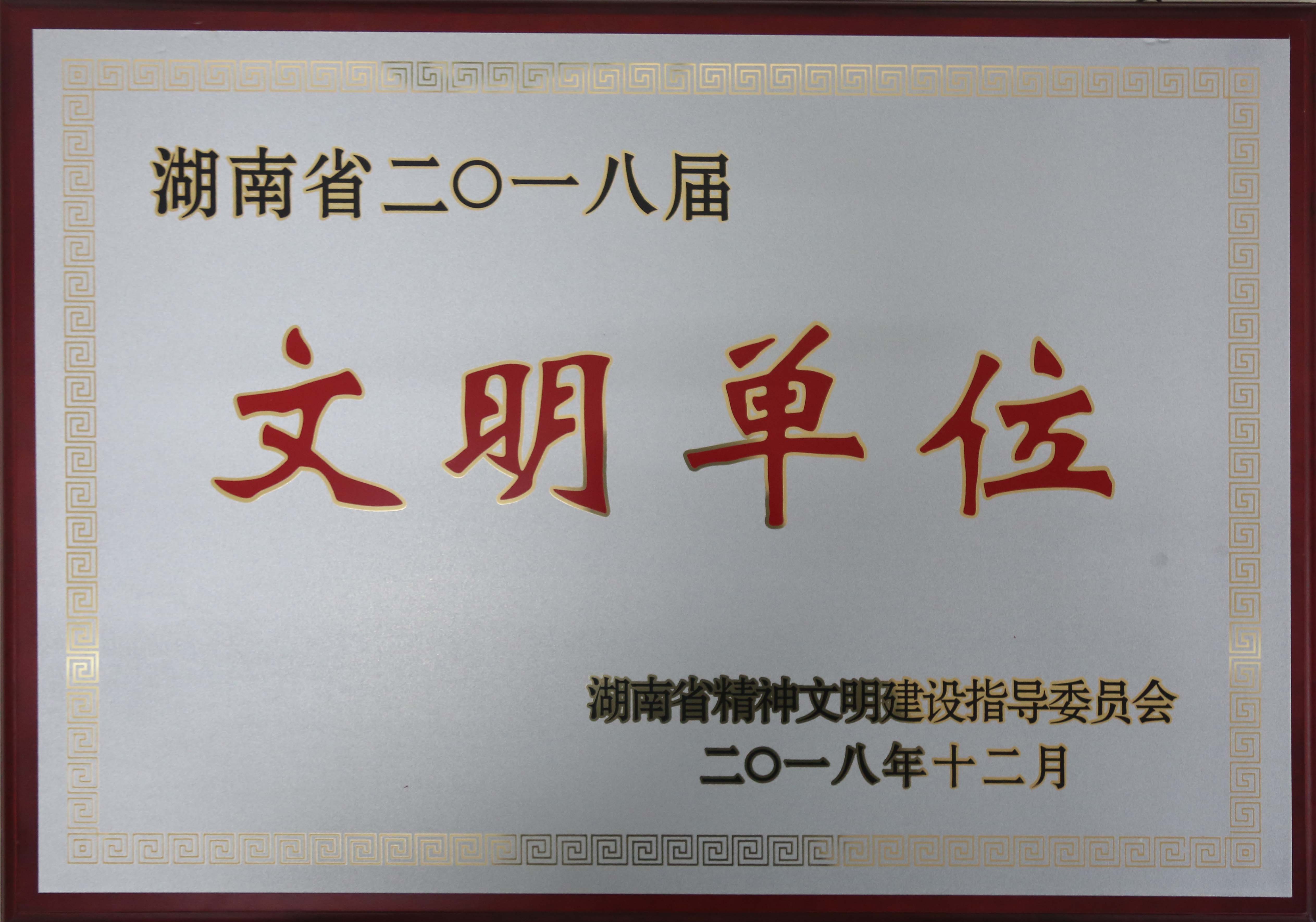 - 2018年12月被湖南省精神文明建設(shè)指導(dǎo)委員會評為“湖南省二〇一八屆文明單位”